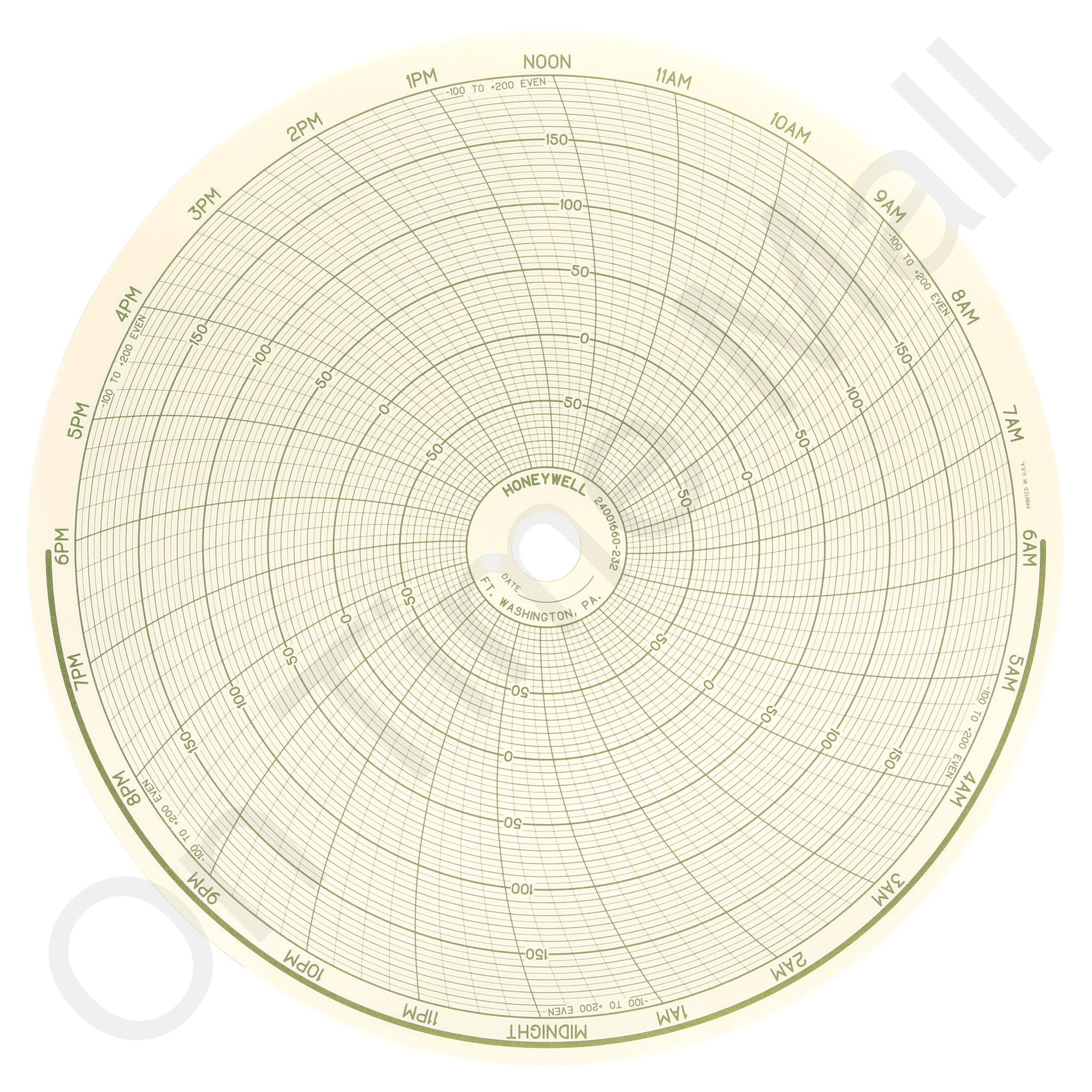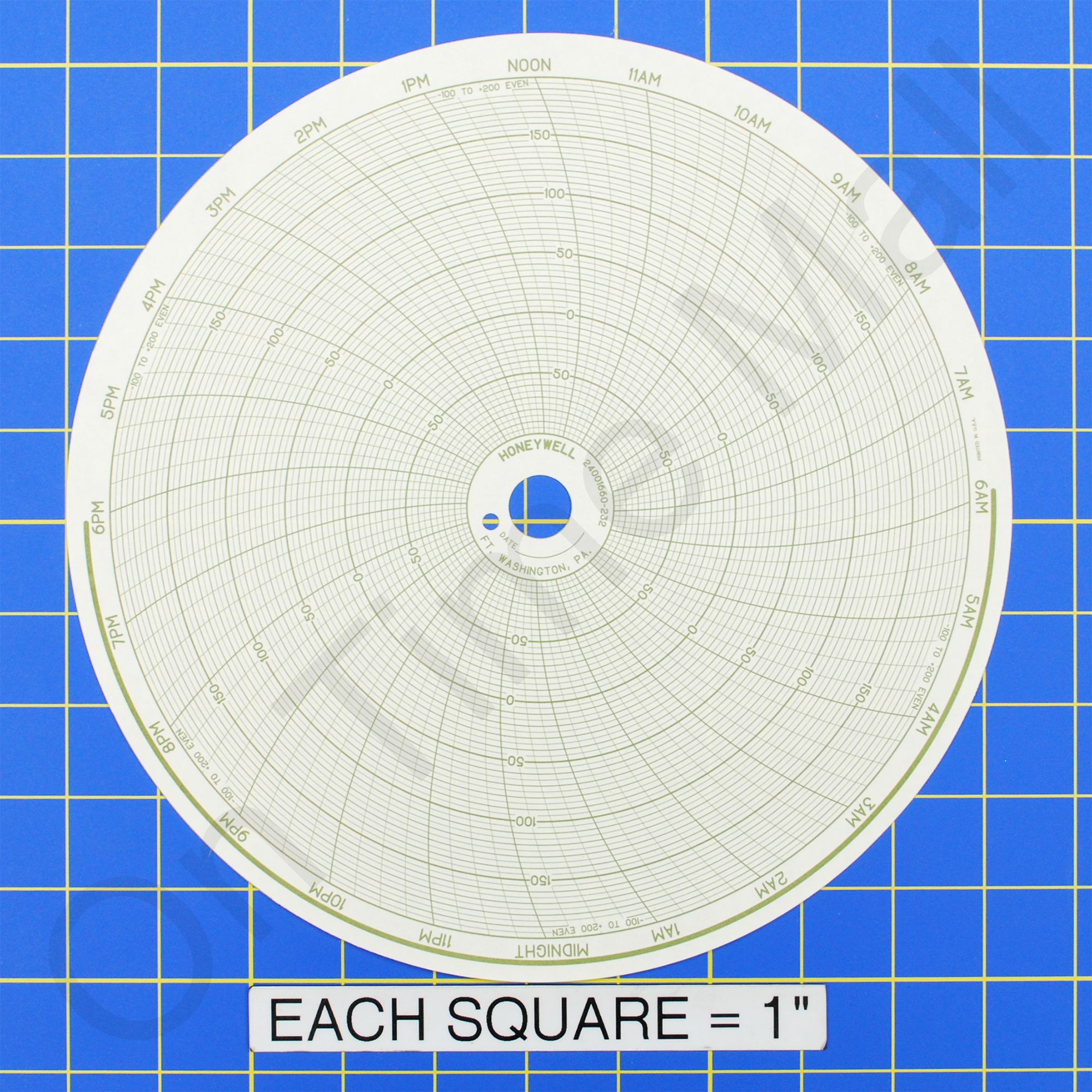 Replacement 10 inch round circular charts for Honeywell industrial chart recorder. Package contains 100 circular charts.