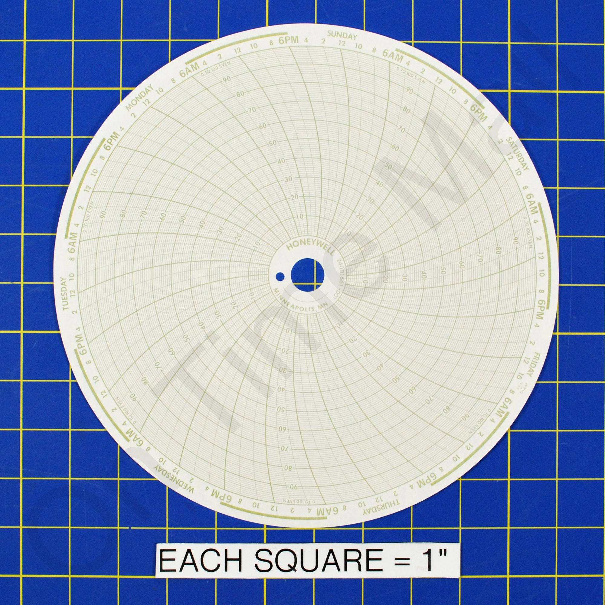 Replacement circular charts for Honeywell industrial chart recorder. Package contains 100 circular charts.