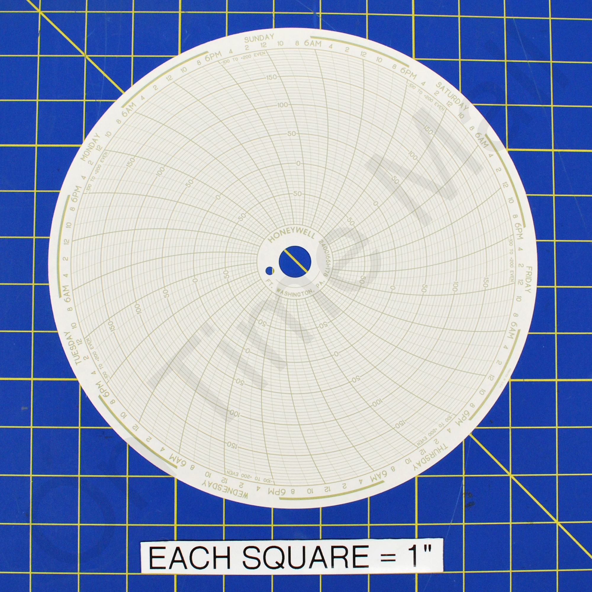 Replacement 10 inch round circular charts for Honeywell industrial chart recorder. Package contains 100 circular charts.