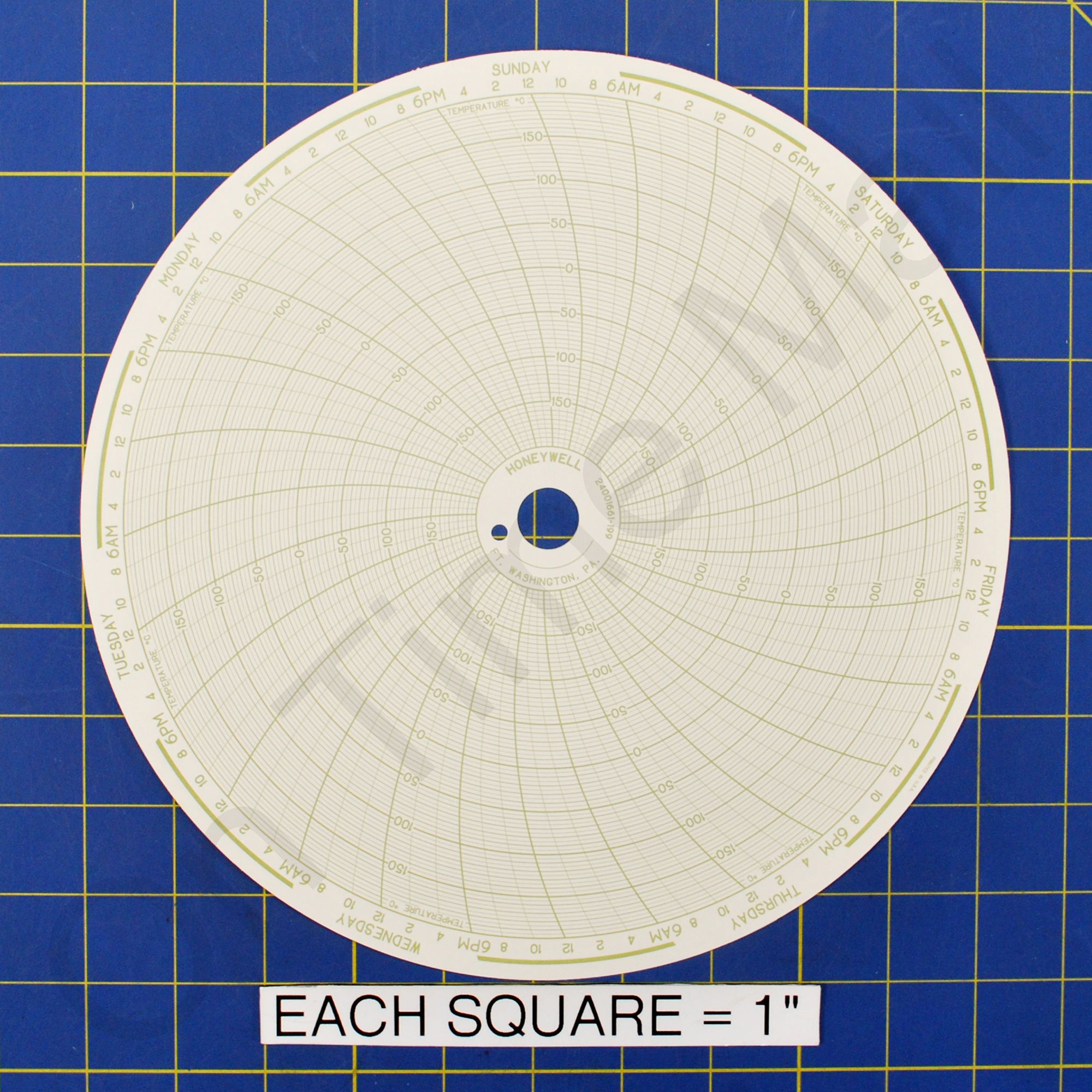 Replacement 10 inch round circular charts for Honeywell industrial chart recorder. Package contains 100 circular charts.
