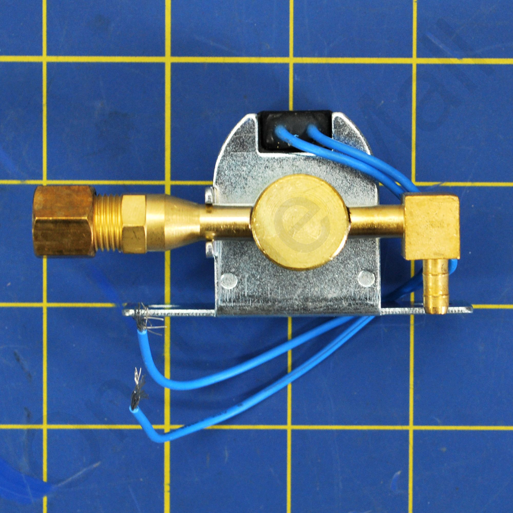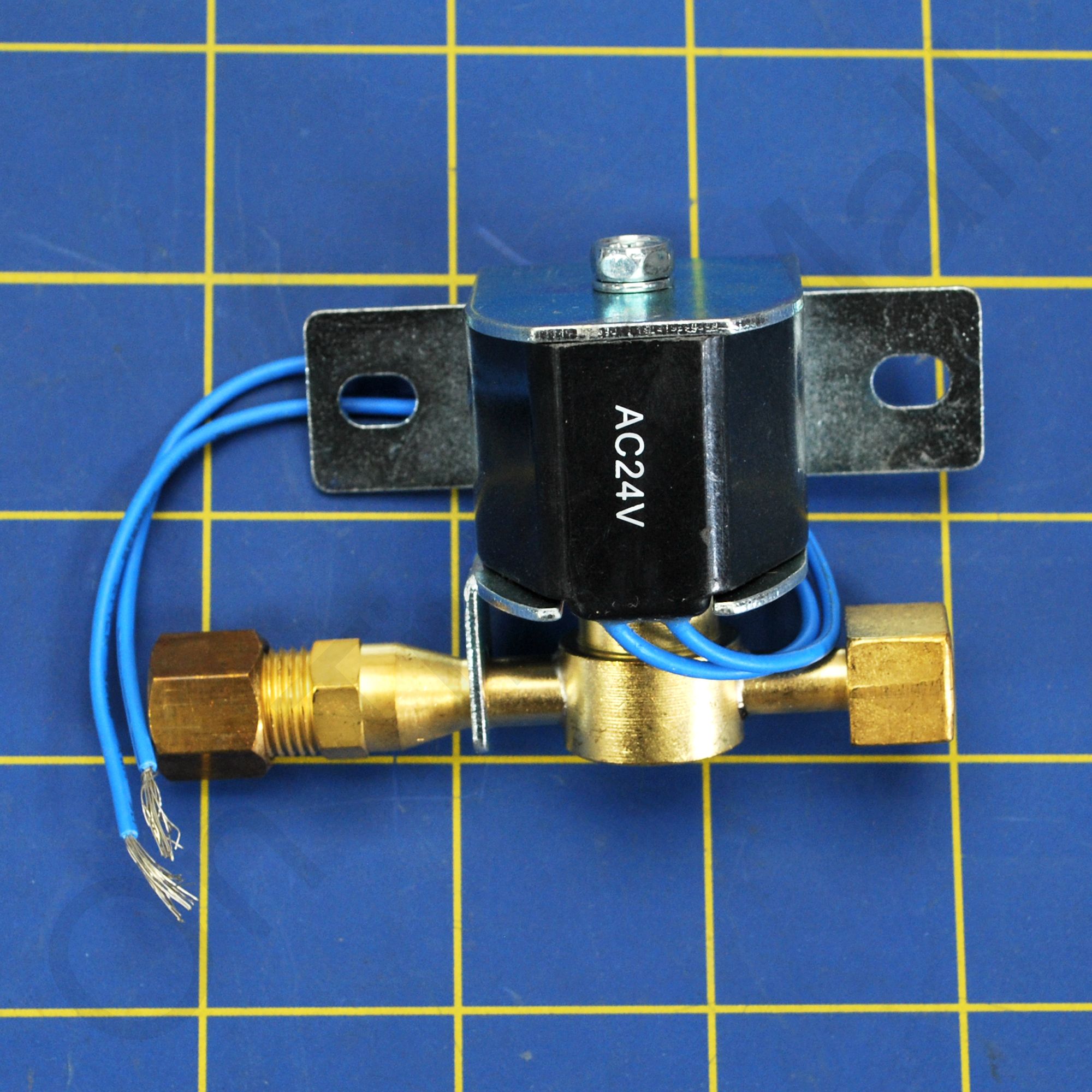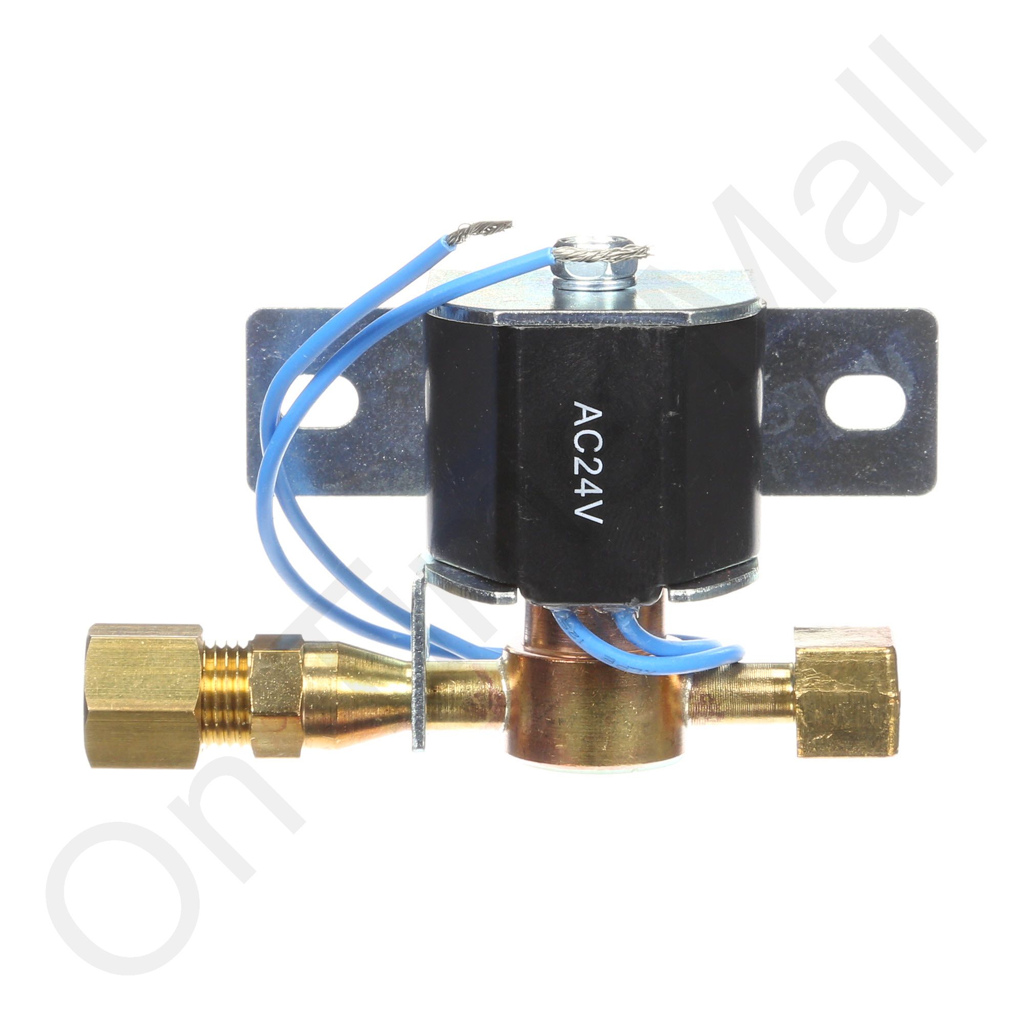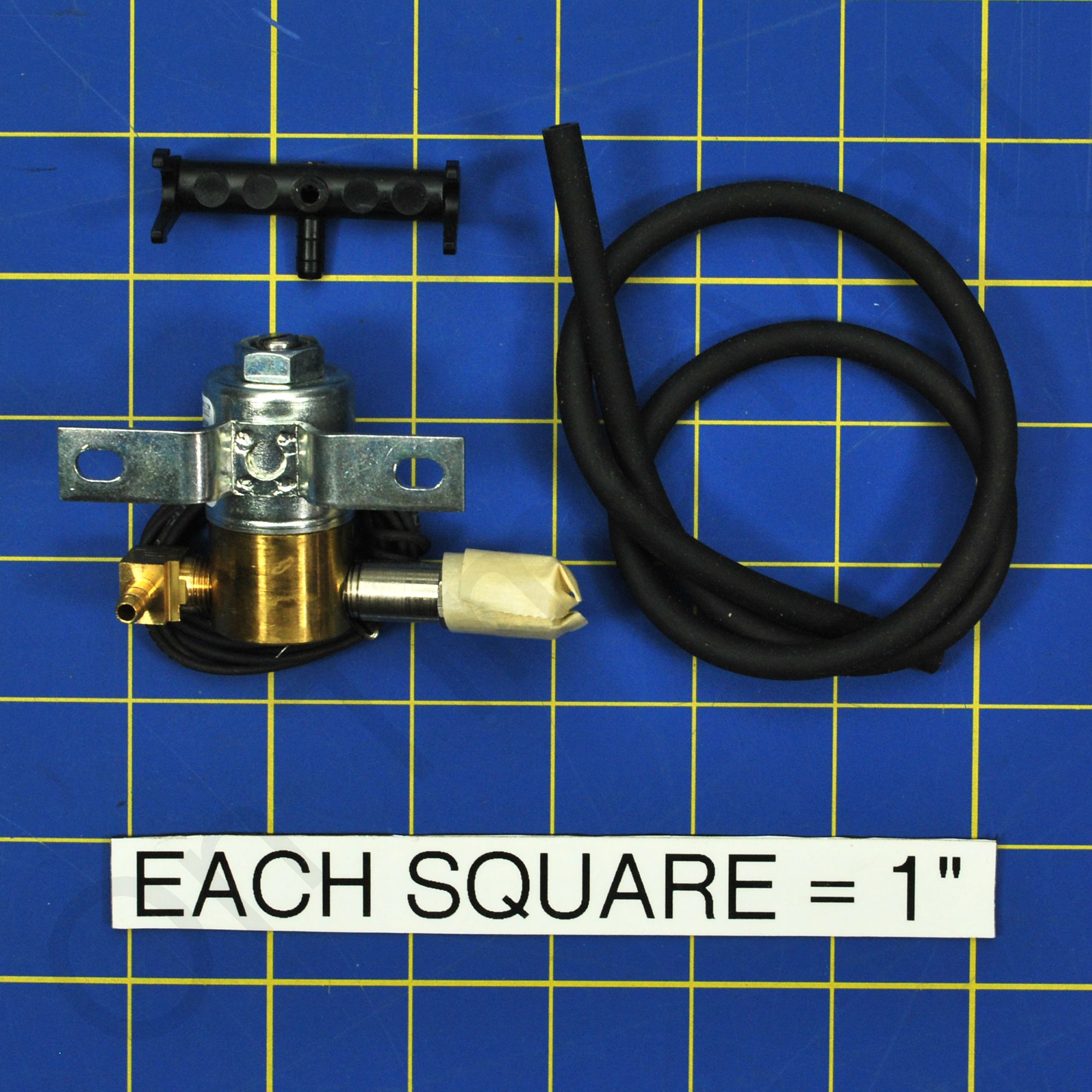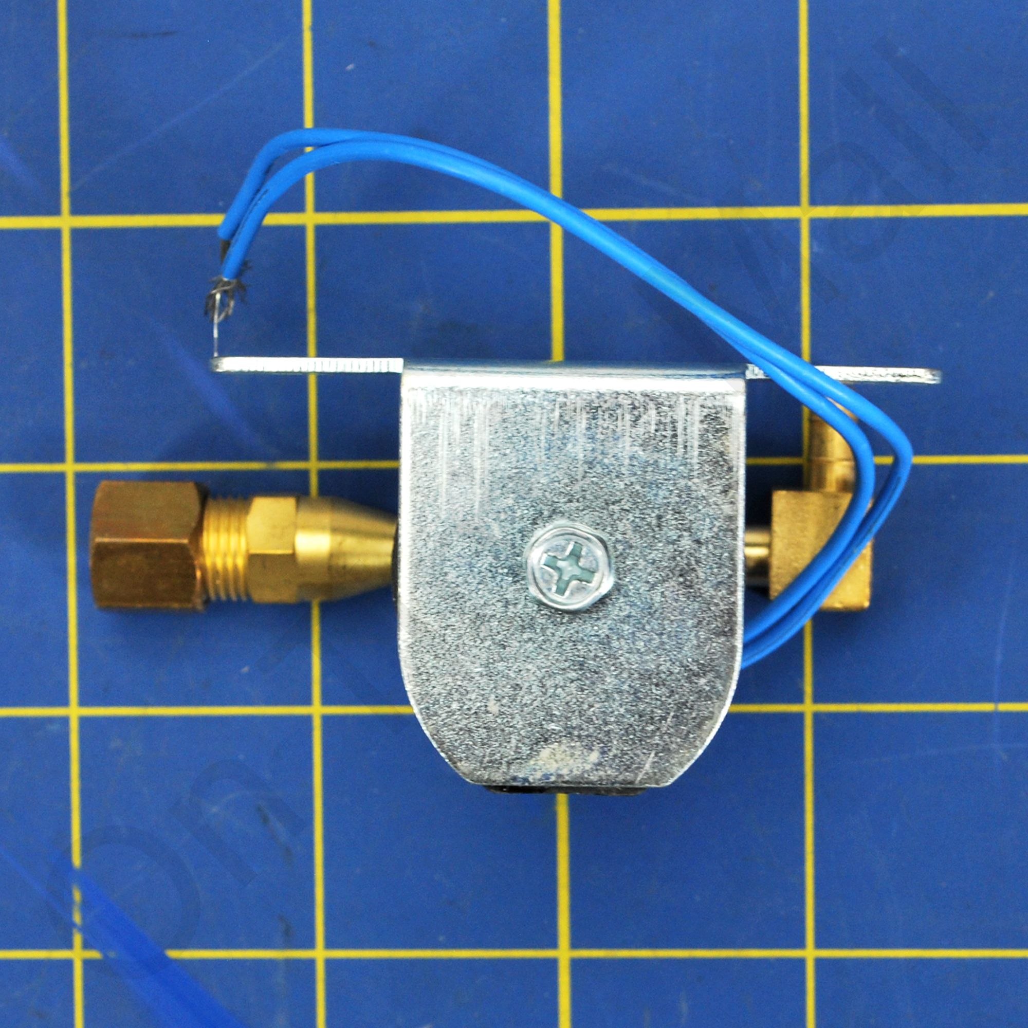 Replacement solenoid valve assembly for residential series humidifiers. The orifice and strainer screen is pre-installed on the inlet side of the valve. Also included is the water distribution tube and plastic feed nozzle.