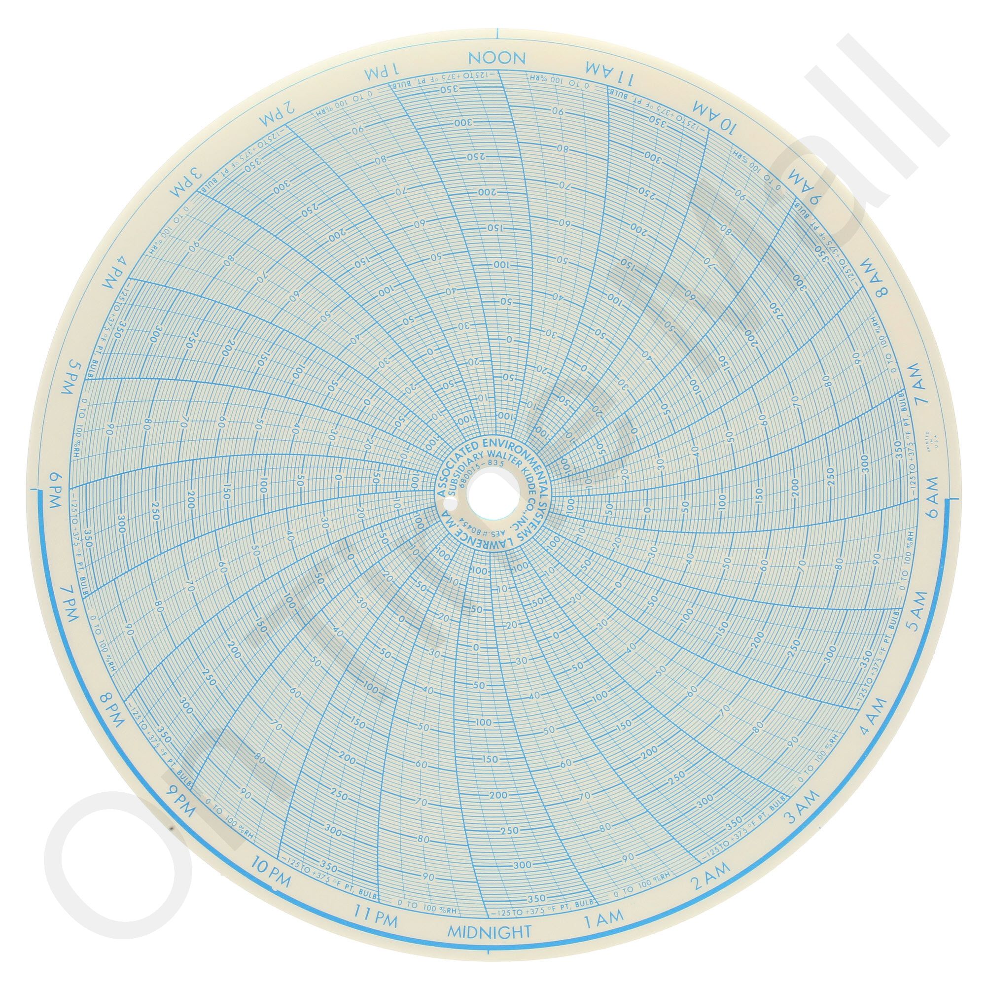 Replacement 10 inch round circular charts for Honeywell industrial chart recorder. Package contains 100 circular charts.
