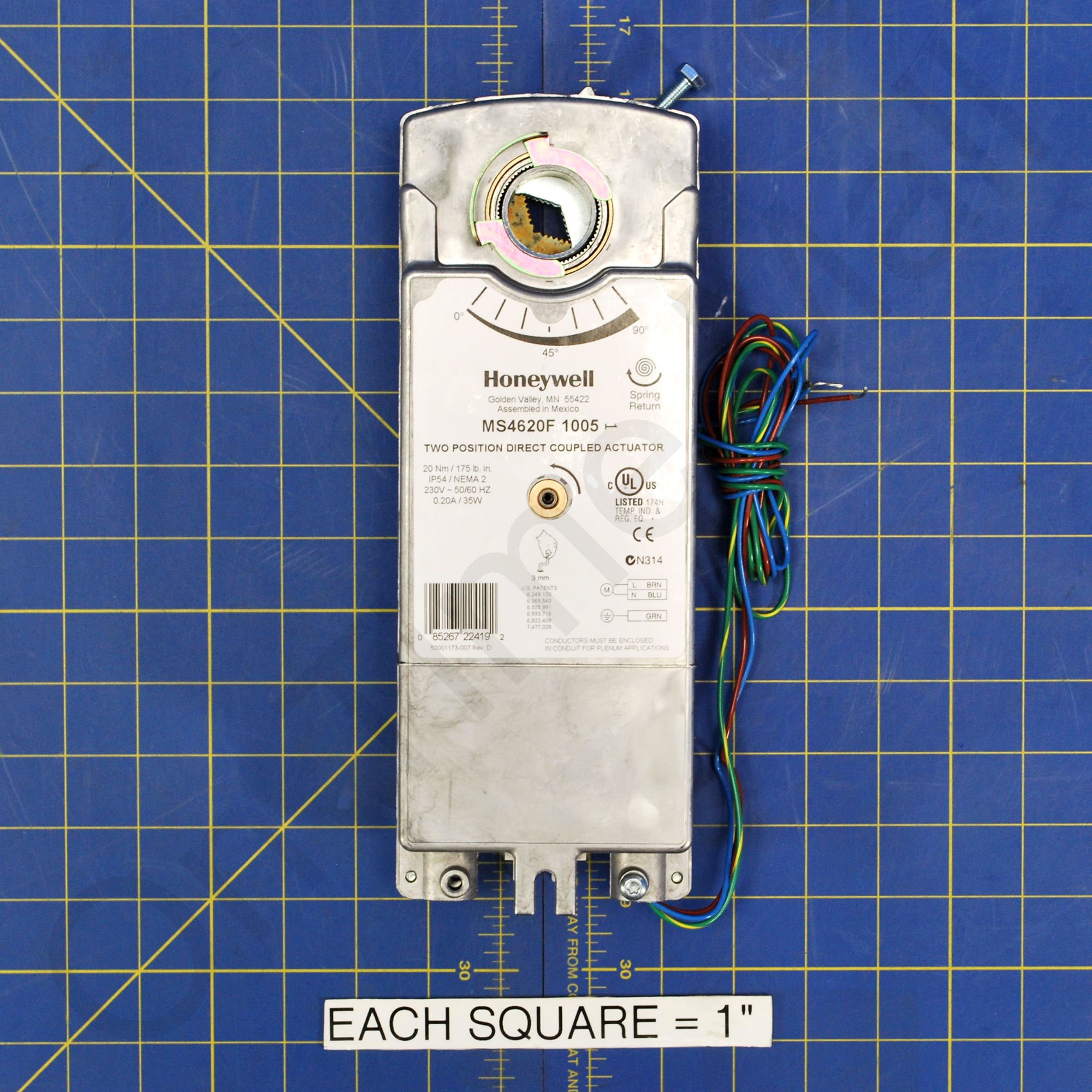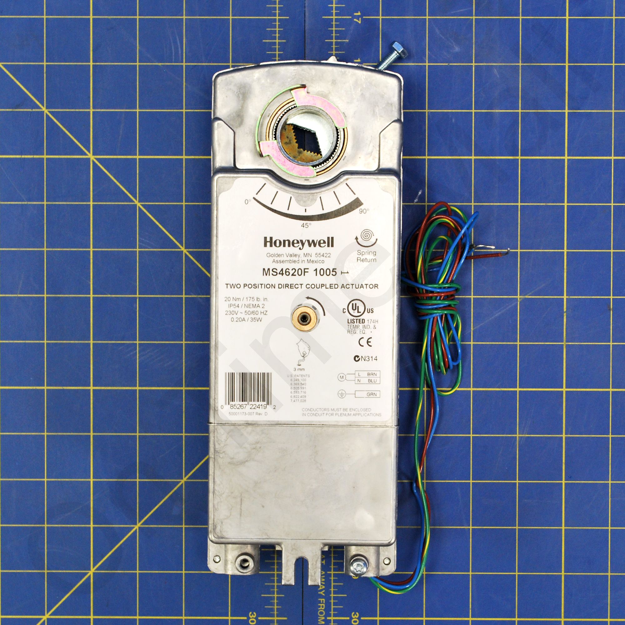 Honeywell MS4620F1005. Fast-Acting, Two-Position Actuator - 175 lb-in, Spring Return By orientation, 230 Vac +/-10%.