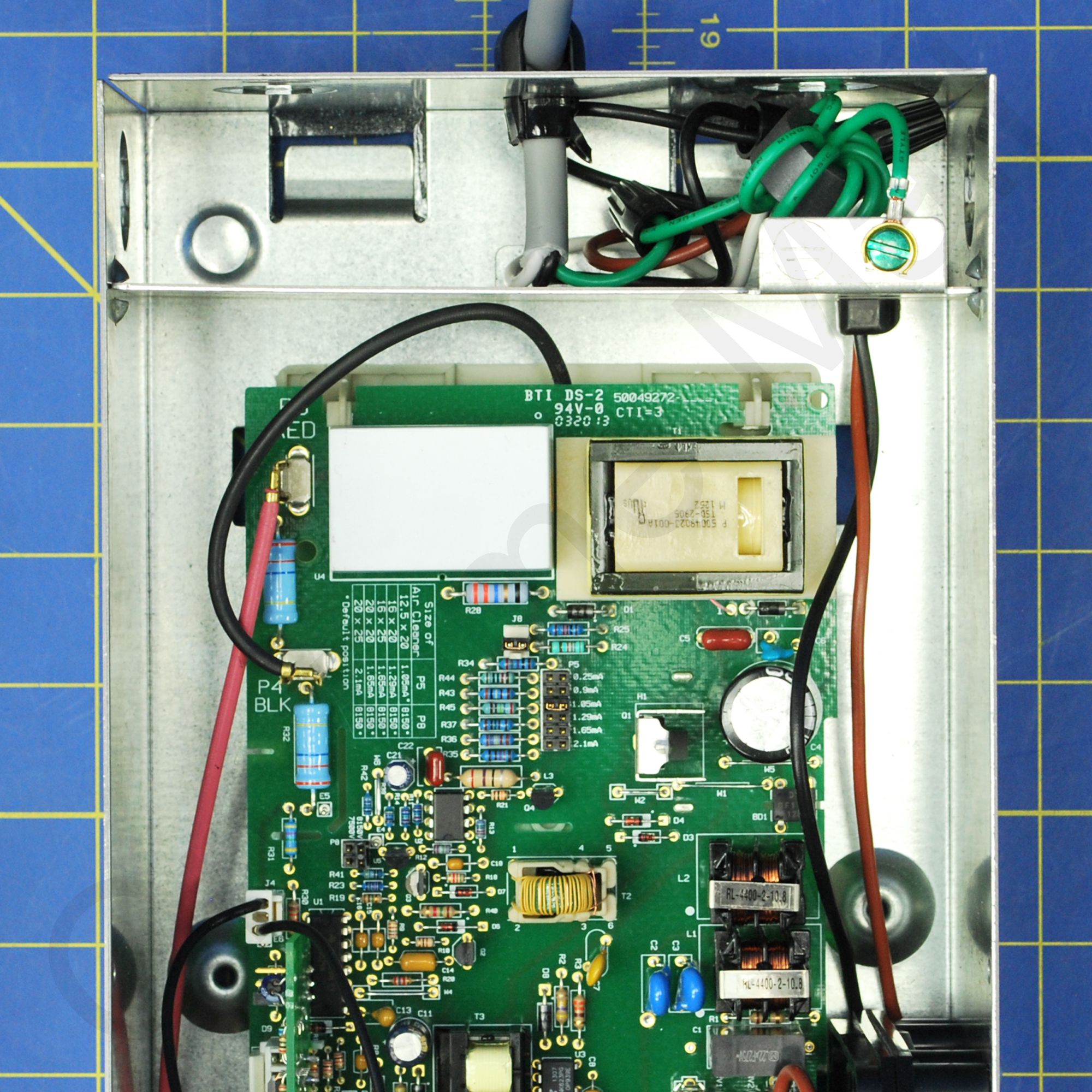 Complete power box assembly for single cell units. Includes switch, high voltage circuit board, air flow switch, box cover, power cord and neon light. Replaces: 208419D