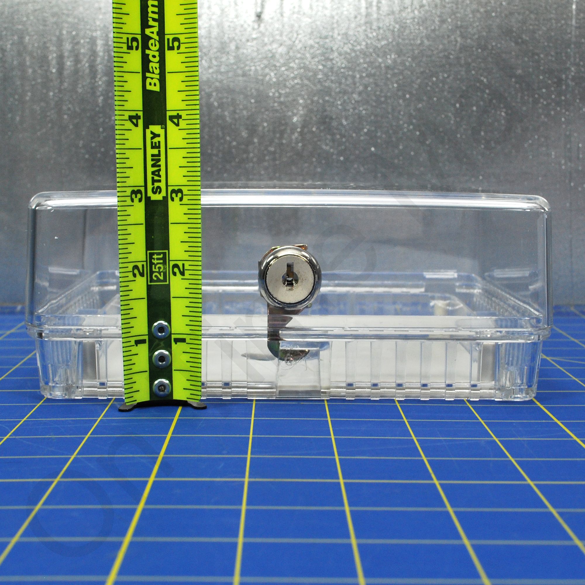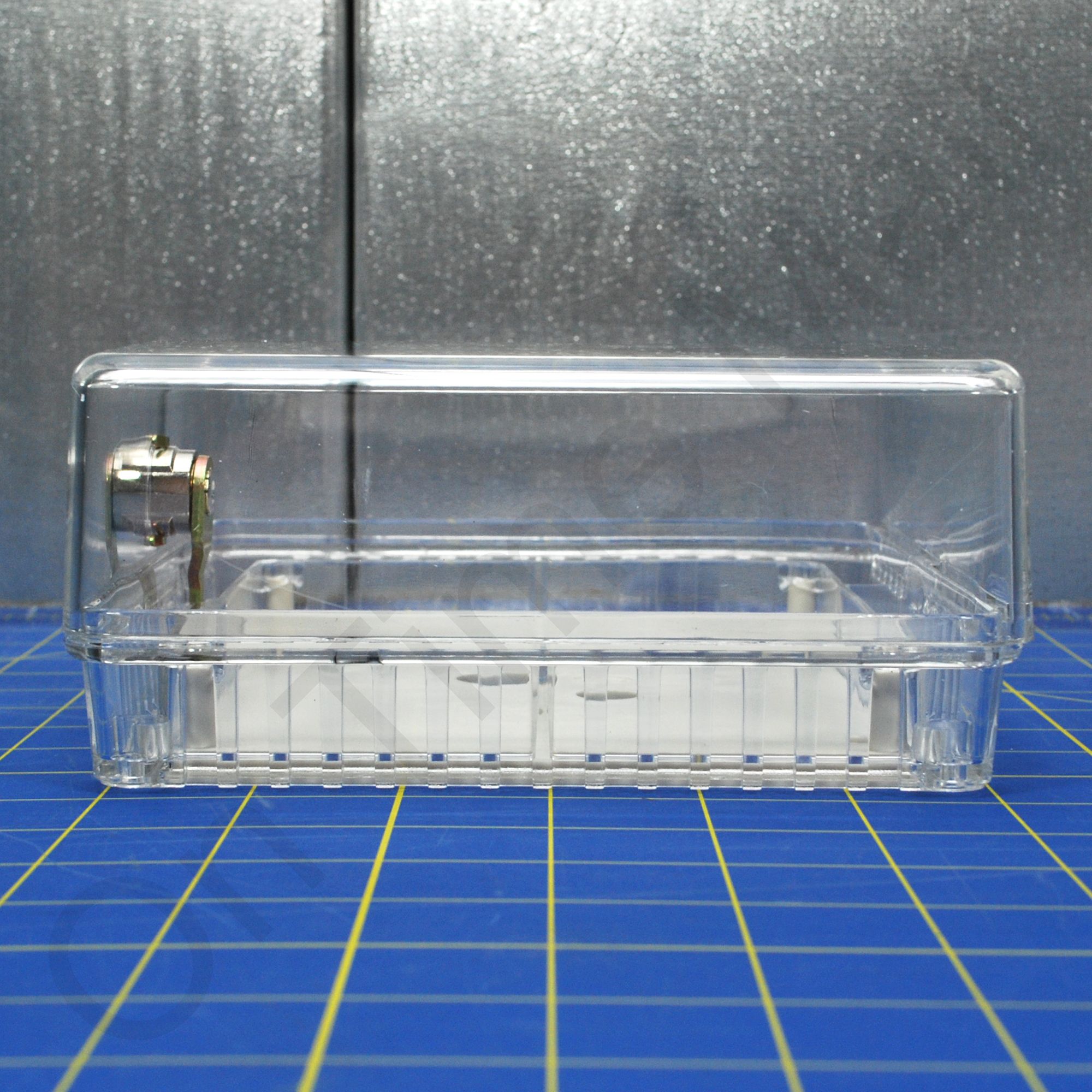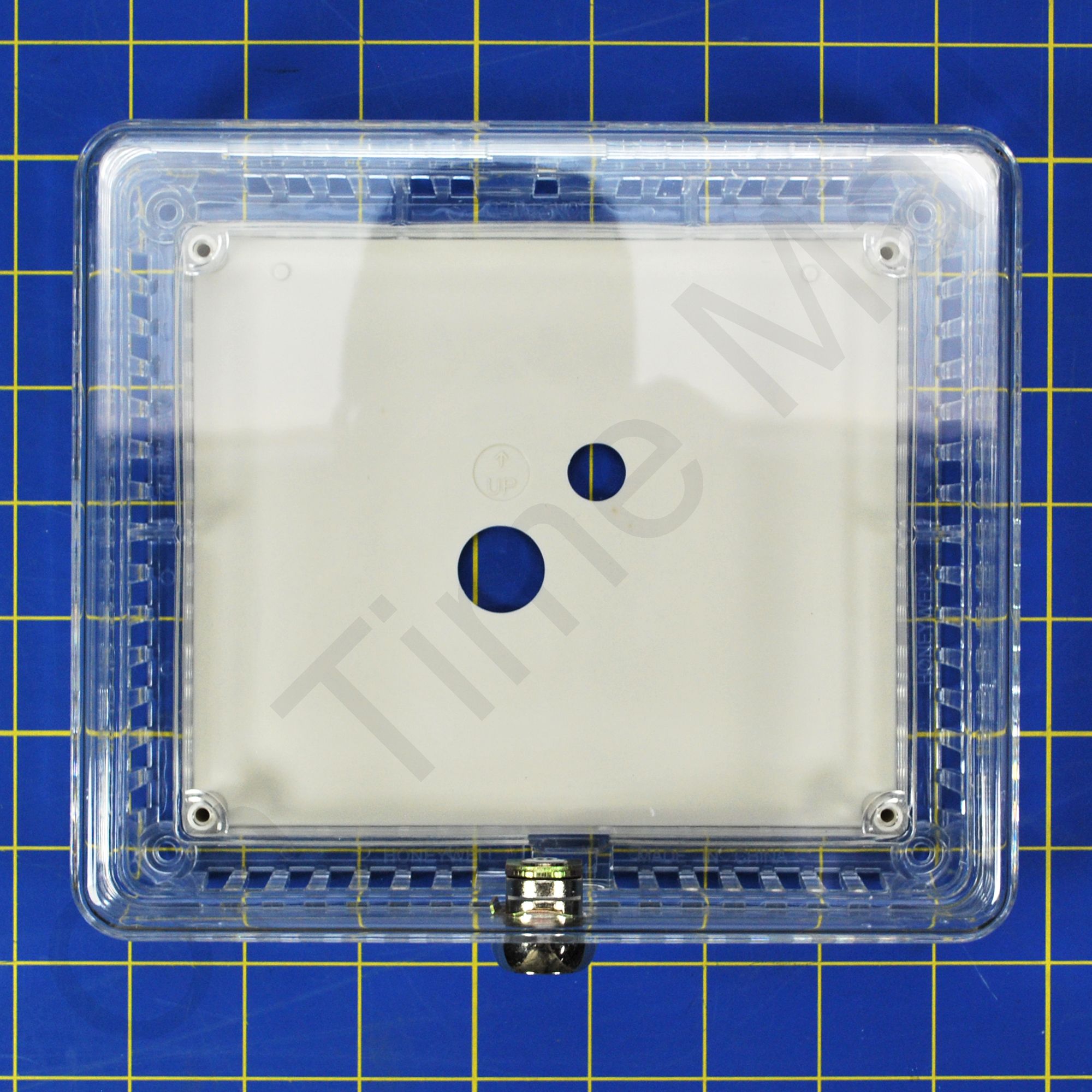 Medium universal thermostat guard Clear cover. Fits any brand thermostat. Includes 2 keys and a wall plate. Lock box cover can be installed without removing the existing thermostat or by using the included wall plate should you wish to remove the thermostat first. Unique double-wall construction provides extra measure of tamper-resistance. Used in both new and existing applications. Tamper-resistant lock; key cannot be removed unless in locked position. All models mount vertically or horizontally on wall or exposed junction box. Vents in guard base allow airflow for optimum thermostat performance. Also known as part CG511A1000