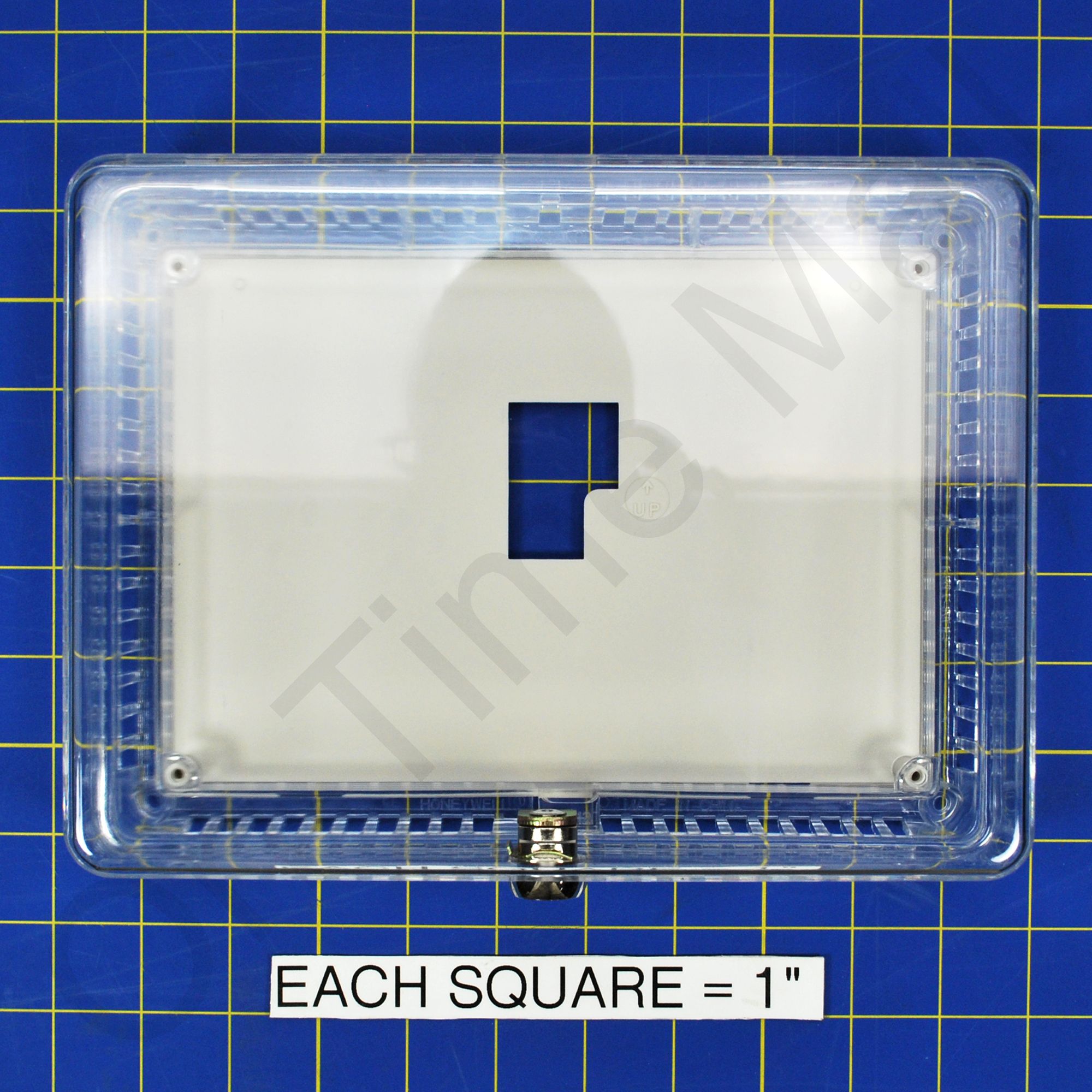 Large universal thermostat guard Clear cover. Fits any brand thermostat. Includes 2 keys and a wall plate. Lock box cover can be installed without removing the existing thermostat or by using the included wall plate should you wish to remove the thermostat first. Unique double-wall construction provides extra measure of tamper-resistance. Used in both new and existing applications. Tamper-resistant lock; key cannot be removed unless in locked position. All models mount vertically or horizontally on wall or exposed junction box. Vents in guard base allow airflow for optimum thermostat performance. Also known as part CG512A1009
