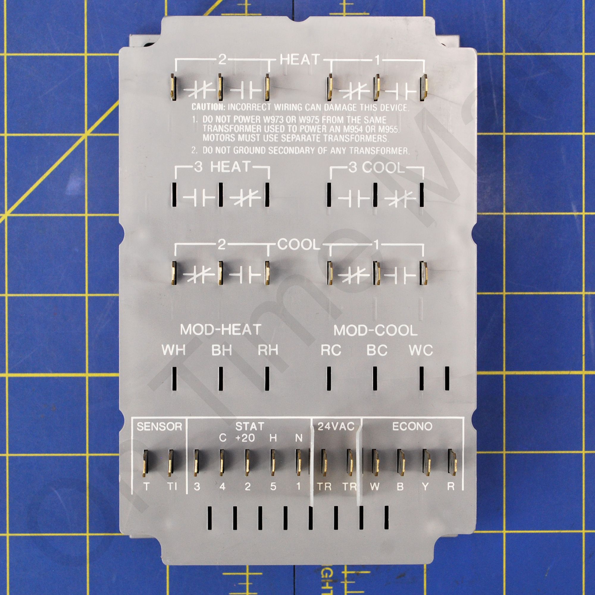 Honeywell W973A1017 Logic Panel. Control heating, cooling and economizer operation in commercial air conditioning and heat pump equipment. Proven, reliable temperature control. Many flexible versions to meet your application needs. Panels can be used with staged gas, oil, or electric heat; modulating gas, hot water, or steam heat; and direct expansion or modulating chilled water cooling. Control up to 3 on-off heat or cool stages or up to 10 on-off heat and/or cool stages using W975 Satellite Sequencers. Modulating dc current signal controls economizer heating or cooling valve motors. T7067 Dual Set Point Thermostat/Transmitter located in controlled space provides heating and cooling input signal based on space demand. C7046A sensor located in discharge air duct provides heating/cooling anticipation and economizer modulating low limit signal. System cycles all stages off on power interruption. When power is restored, system sequences required stages on with timed inter-stage delay.