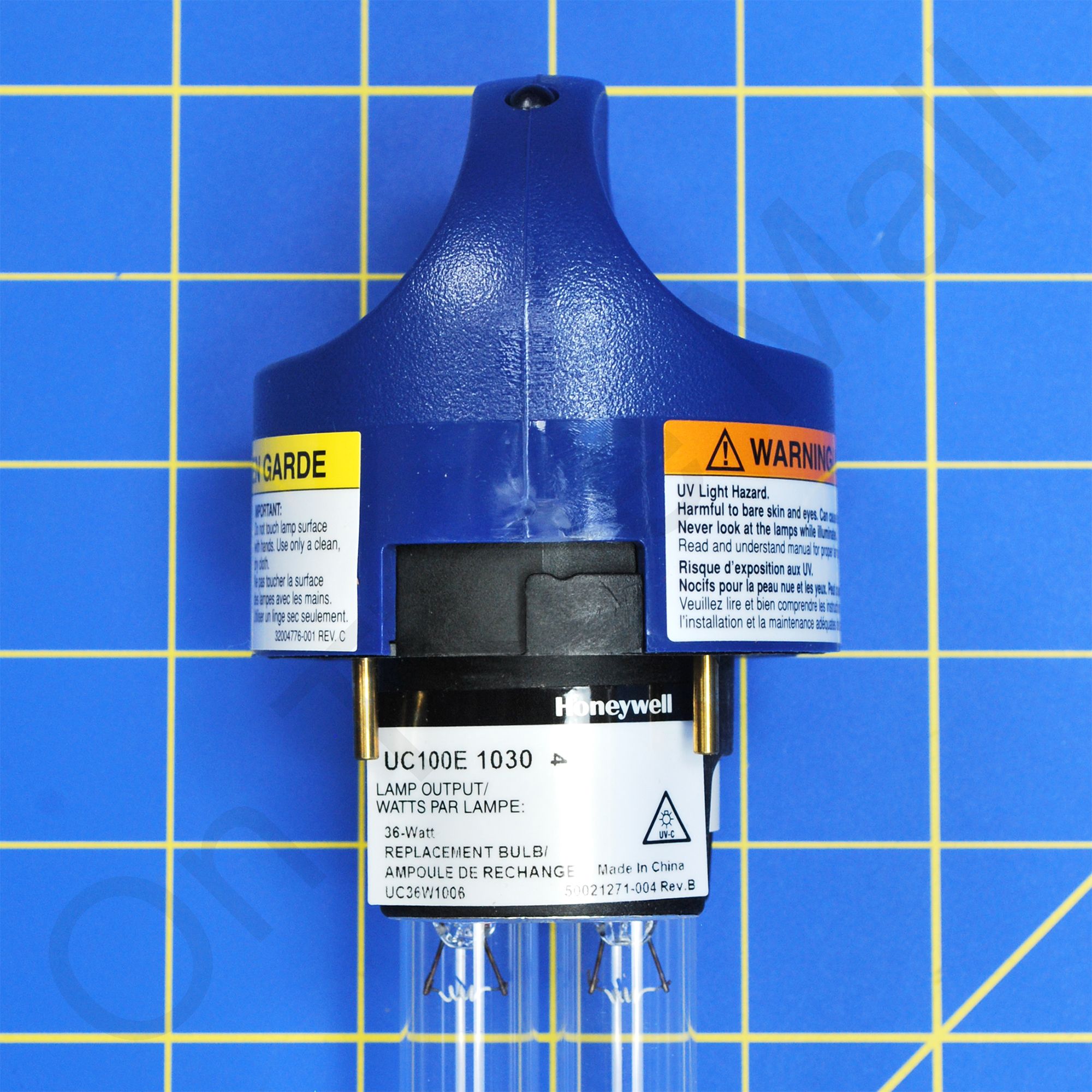 Honeywell UC100A1054 Single 36 Watt UV Bulb. Replacement lamp for various 36 watt single lamp Honeywell UV systems. CAUTION: UV Lamps must be replaced once per year for optimal operation. Replaced with UC100E1030